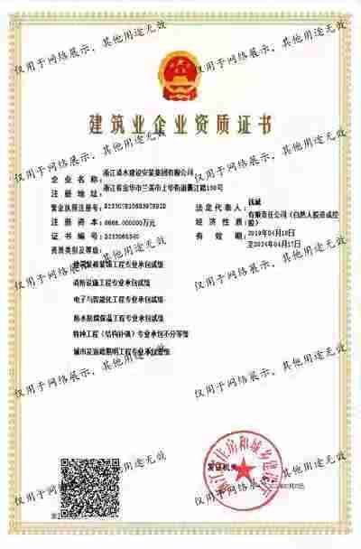 浙江清水建設安裝集團有限公司成立于2013年,注冊資金6688萬元。集團具有消防設施工程專業(yè)承包壹級、城市與道路照明專業(yè)承包壹級、電子與智能化專業(yè)承包壹級、建筑裝飾裝修專業(yè)承包貳級、防水防腐保溫專業(yè)承包貳級、市政工程施工總承包貳級、機電工程施工總承包貳級、建筑工程施工總承包貳級、電力工程施工總承包貳級、機電工程專業(yè)承包貳級、環(huán)保工程專業(yè)承包貳級、古建筑工程專業(yè)承包貳級、特種工程結構補強專業(yè)承包、建筑施工勞務作業(yè)專業(yè)承包(憑建筑業(yè)企業(yè)資質證書經(jīng)營